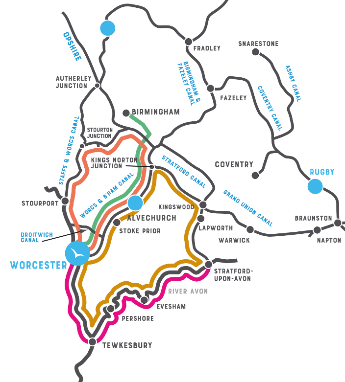 The area surrounding Birmingham presents you with an abundance of routes to choose from, and you have three possible bases to start from. From Gailey Wharf you can look forward to a sailing area full of contrasts with a fine mix of rural England and urban culture. Along the waterways there is ample opportunity to find family-friendly activities. The second base is in Alvechurch Marina at the heart of a very varied canal network in the Midlands. The last base is in Worcester, where the Severn River runs right though the city.