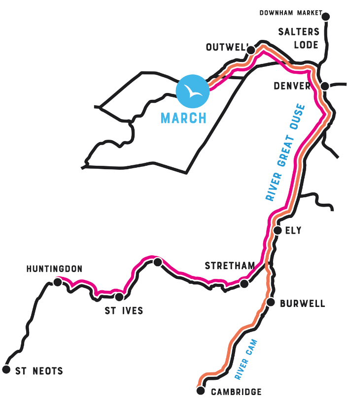 From the base in March, you are all set to sail in the eastern part of England. Here you start just in between the rivers Ouse and Nene, and you also have the opportunity for a detour to the Cam River.