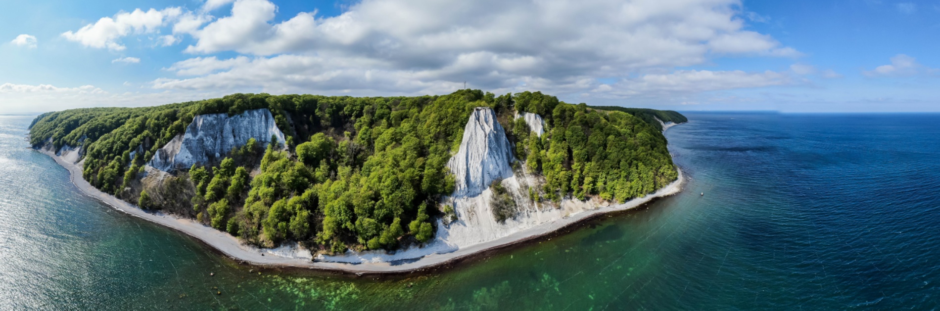 The arrival at Rügen is an impressive sight, especially along the northern coasts where vertical white cliffs dominate the scenery. The sail to the island from the sea side provides a unique experience, distinct from the view from the land. Rügen is known for its natural beauty, and a sailing trip around the island is an ideal way to experience its charm.
